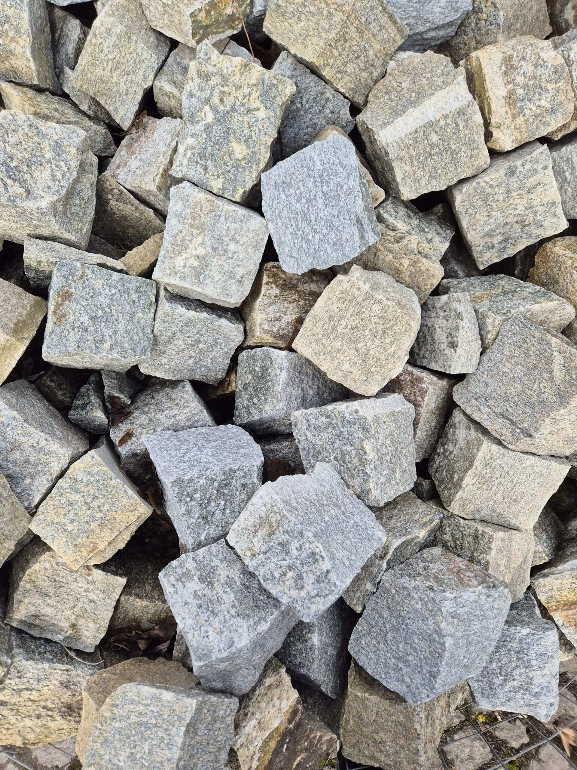 Luserna-Gneis Pflaster 6/8 cm ( grau-grün ) in Kiste